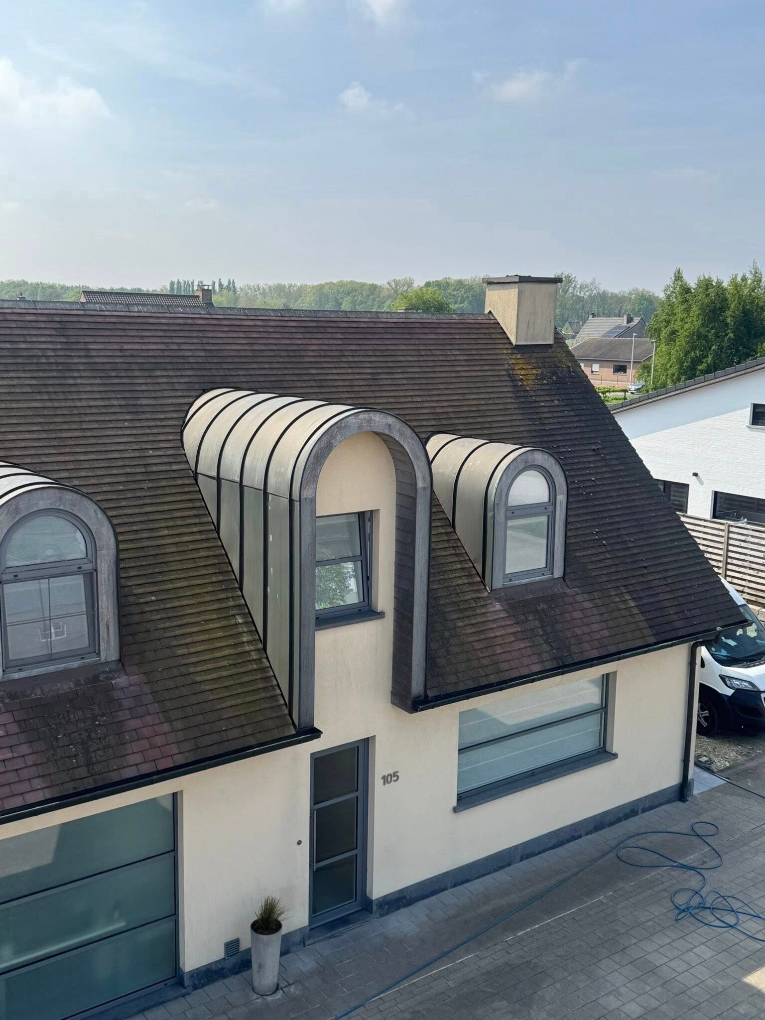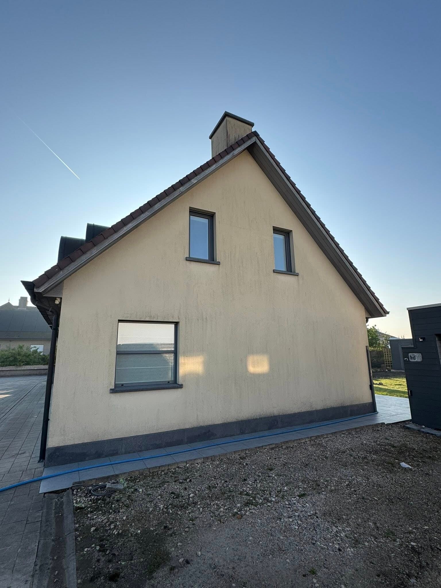 Dak en crepi-gevel gereinigd te Houthulst! We voerden een professionele stoomreiniging uit bij deze woning in Houthulst. Dankzij de warme stoomtechniek verdwenen mos, algen en aanslag – zonder schade aan dak of gevel.